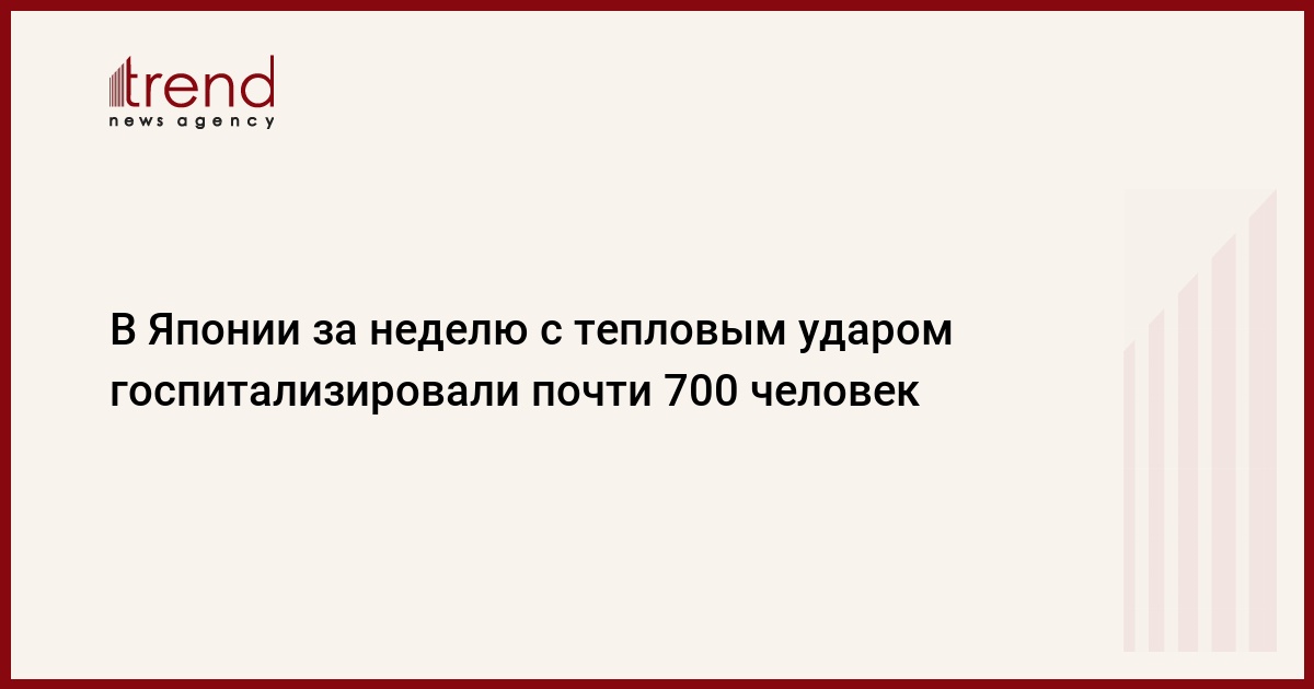 Почти 700 человек попали в больницы в Японии за неделю с тепловым ударом, сообщила служба пожарной охраны, которая в Японии отвечает также и за службу скорой помощи, передает РИА Новости.