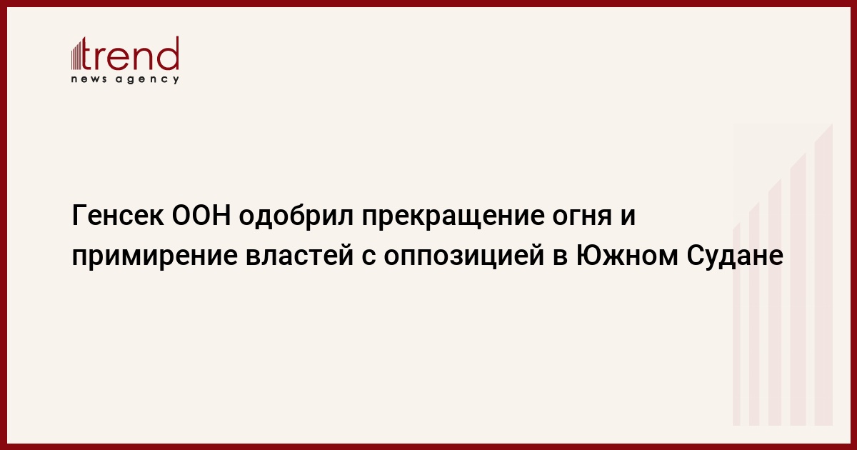 "Генсек ООН приветствует подписание соглашения 5 августа в Хартуме, Судан о разделе полномочий между сторонами в Южном Судане и считает его важным шагом в восстановлении мира в стране", - отметил Хак. Он также добавил, что Гутерриш "высоко ценит инициативу Форума высокого уровня по восстановлению мира под руководством Межправительственного органа по вопросам развития, а также усилия Республики Судан в достижении всеобъемлющего политического урегулирования конфликта в Южном Судане".