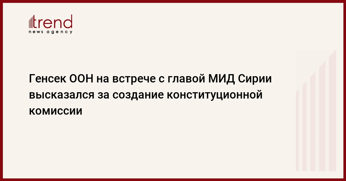 Генеральный секретарь ООН Антониу Гутерриш на состоявшейся в пятницу встрече с министром иностранных дел Сирии Валидом Муаллемом заявил о поддержке международным сообществом политического урегулирования конфликта в Сирии и призвал ускорить работу по формированию комиссии по выработке новой конституции.