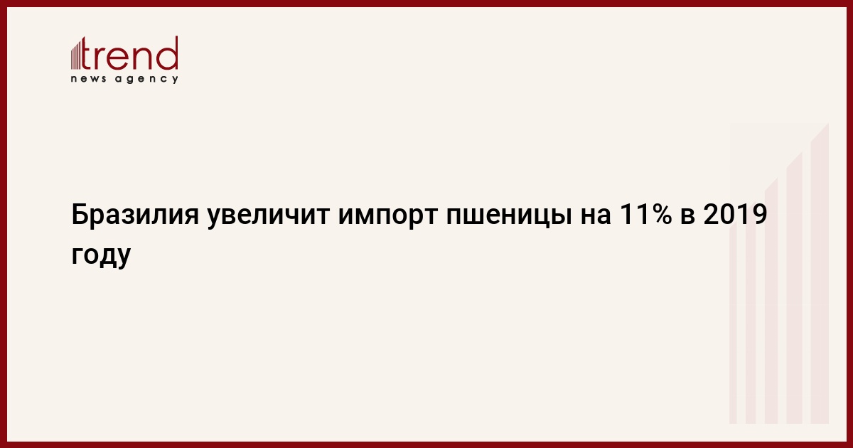 Бразилия в 2019 году может импортировать до 7 миллионов тонн пшеницы, что на 11 процентов больше чем ожидаемый импорт 2018 году. С таким прогнозом выступил управляющий департамента производства зерна компании Bunge, передает Reuters.
