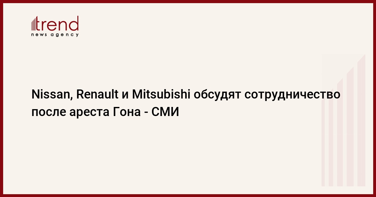 Руководители автомобильных компаний Nissan Motor, Renault и Mitsubishi Motors планируют провести переговоры на следующей неделе, чтобы обсудить пути укрепления сотрудничества после ареста Карлоса Гона и назначения нового руководства французским автопроизводителем, передает Trend со ссылкой на РИА Новости.
