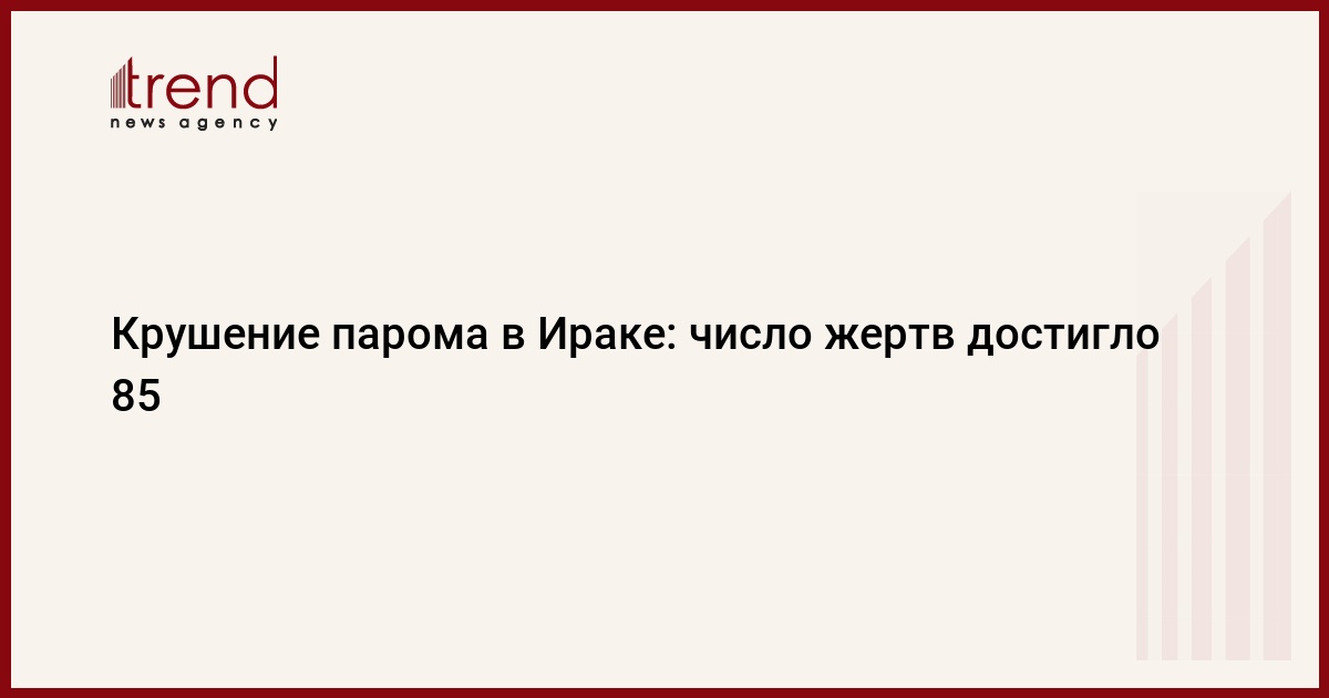 Число погибших в результате крушения парома близ иракского города Мосул выросло до 85 человек, передает Trend со ссылкой на Интерфакс.