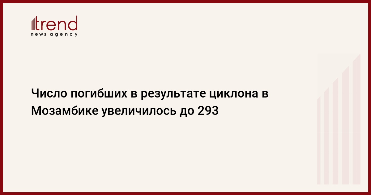 Число погибших в Мозамбике в результате наводнений, вызванных на прошлой неделе тропическим циклоном "Идай", возросло до 293 человек. Как передаёт Trend со ссылкой на ТАСС oб этом заявил в пятницу премьер-министр республики Карлуш Агуштинью ду Рузариу, сообщает агентство "Синьхуа".