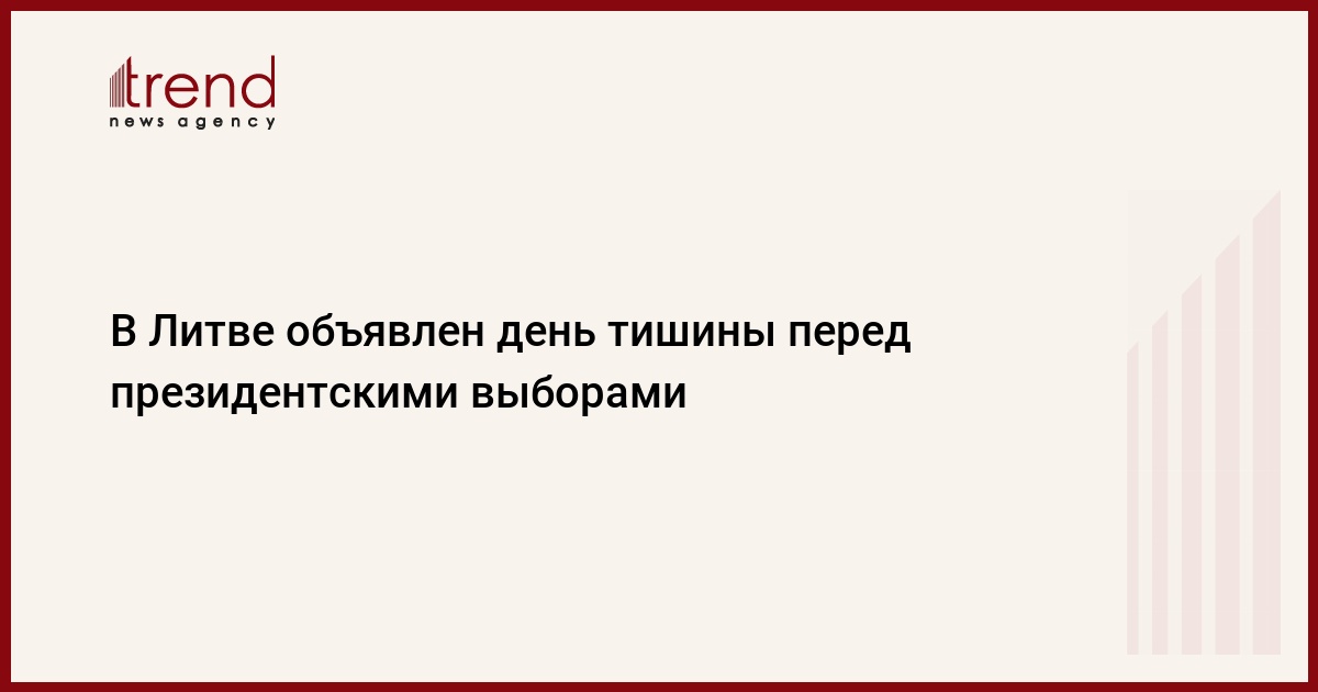 День тишины объявлен в Литве перед назначенными на воскресенье президентскими выборами, одновременно с которыми пройдет голосование на двух референдумах, передает Trend со ссылкой на ТАСС.