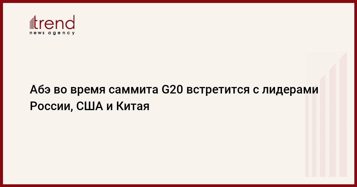 Премьер-министр Японии Синдзо Абэ во время предстоящего в Осаке саммита Группы двадцати проведет ряд двусторонних встреч, в том числе с президентами РФ и США Владимиром Путиным и Дональдом Трампом, а также с председателем КНР Си Цзиньпином. Об этом сообщил в среду источник в японском МИД, передает Trend со ссылкой на ТАСС.