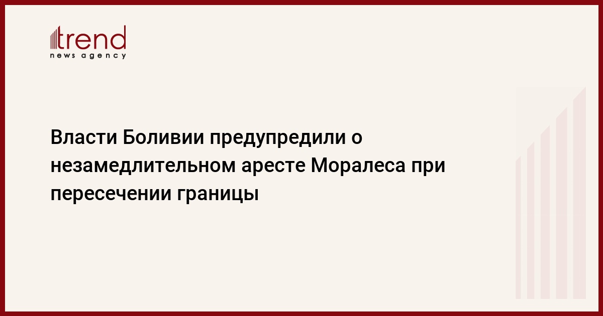 Бывший президент Боливии Эво Моралес будет незамедлительно арестован, если пересечет границу страны. Об этом заявил в пятницу министр юстиции и транспарентности институтов власти Альваро Коимбра, передает Trend со ссылкой на ТАСС.