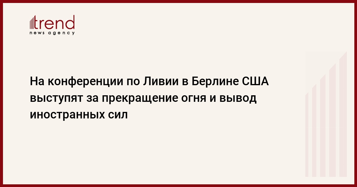 Госсекретарь США Майкл Помпео на конференции по урегулированию ситуации в Ливии, которая пройдет в Берлине 19 января, будет выступать за продолжение режима прекращения огня и вывод из страны иностранных сил. Об этом заявил в четверг на телефонном брифинге для журналистов представитель Госдепартамента высокого ранга, передает Trend со ссылкой на ТАСС.