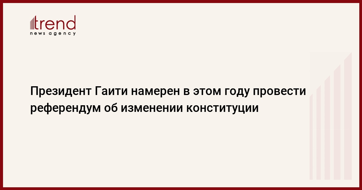 Президент Гаити Жовенель Моиз намерен провести в 2020 году референдум об изменении конституции страны и считает, что эта мера поможет преодолеть политический кризис в республике, передает Trend со ссылкой на ТАСС.
