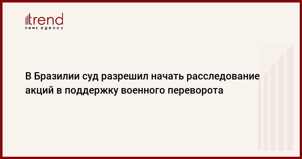 Судья Федерального верховного суда (ФВС) Бразилии Алешандре ди Мораис разрешил начать расследование по факту организации акций в поддержку военного переворота и свержения "режима представительной демократии", о чем накануне ходатайствовала Генеральная прокуратура. Об этом сообщил во вторник телеканал Globo, передает Trend со ссылкой на ТАСС.