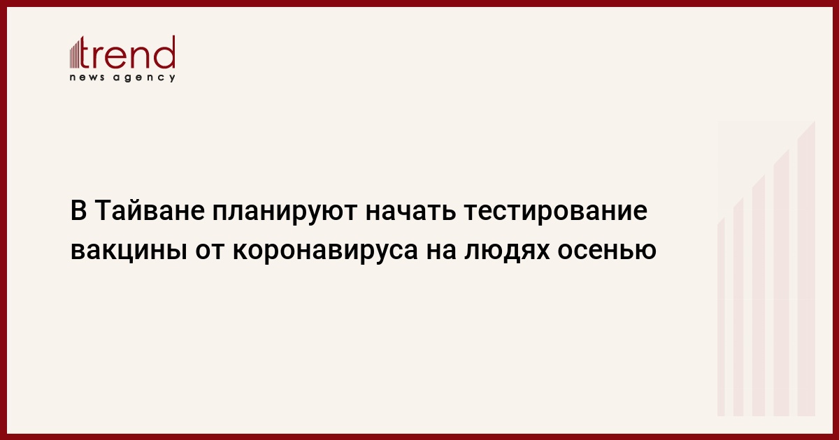Тайваньские медики, разрабатывающие вакцину от коронавируса, рассчитывают начать ее тестирование на людях этой осенью. Об этом сообщил заместитель главы администрации острова Уильям Лай (Лай Циндэ) в пятницу на своей странице в Facebook, передает Trend со ссылкой на ТАСС.
