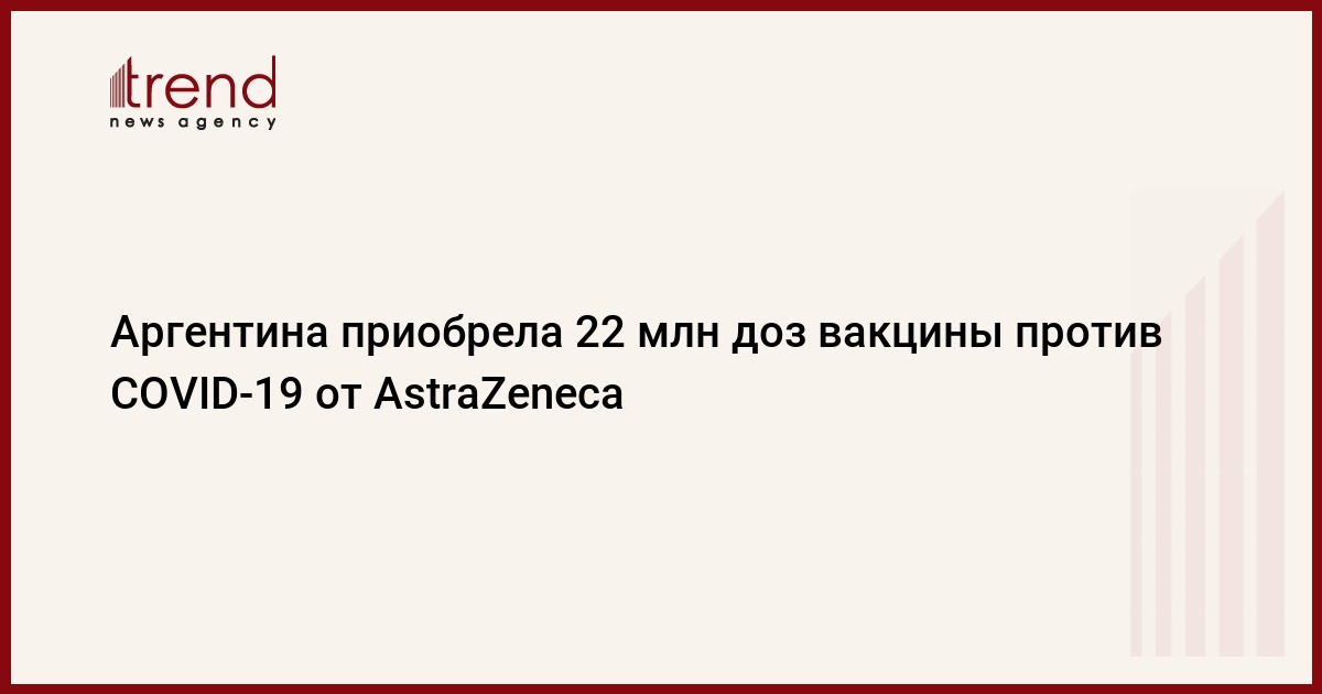 Власти Аргентины купили 22 млн доз вакцины против коронавирусной инфекции нового типа, которая разрабатывается Оксфордским университетом совместно с британской фармацевтической компанией AstraZeneca. Об этом, как передает Trend со ссылкой на Gazeta.ru, сообщает портал Infobae.