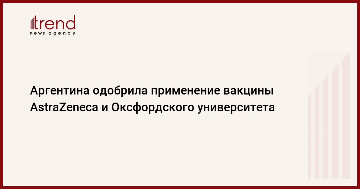 Аргентинское государственное управление по контролю за медикаментами, продуктами питания и технологиями разрешило экстренное применение вакцины от коронавируса, которая была разработана Оксфордским университетом и британско-шведской фармацевтической компанией AstraZeneca. Об этом сообщила пресс-служба правительства южноамериканской республики, передает Trend со ссылкой на ТАСС.