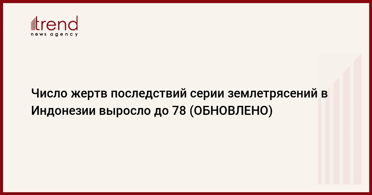 По меньшей мере 78 человек погибли из-за землетрясений, произошедших в индонезийской провинции Западный Сулавеси. Об этом, как передает Trend со ссылкой на ТАСС, сообщил руководитель национального поисково-спасательного агентства Багуса Пурухито.