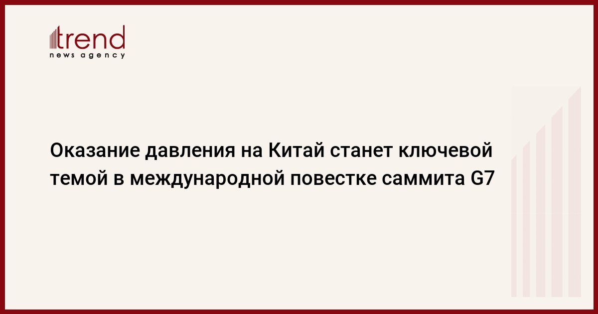 Главной темой международной повестки саммита Группы семи, который будет проходить в Великобритании с 11 по 13 июня, станет Китай, а также вопросы, связанные с оказанием давления на эту страну. Об этом, как передает Trend со ссылкой на ТАСС, сообщил телеканал CBC.