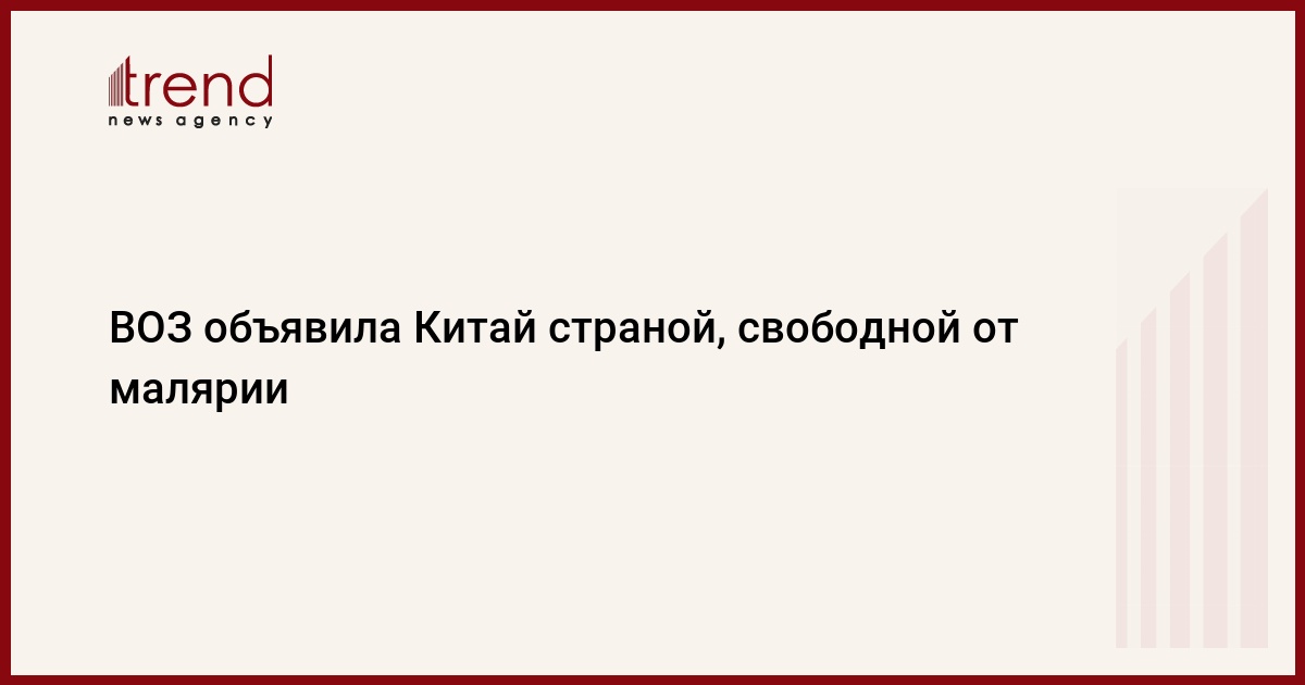 Всемирная организация здравоохранения (ВОЗ) признала Китай страной, свободной от малярии. Об этом заявил в среду в Женеве генеральный директор ВОЗ Тедрос Аданом Гебрейесус, поздравивший Пекин с этим успехом, достигнутым после десятилетий упорной борьбы с опасным недугом, передает Trend со ссылкой на ТАСС.