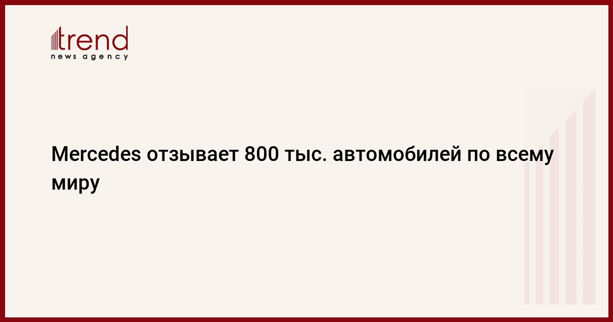 Германский автопроизводитель Mercedes отзывает более 800 тыс. машин по всему миру из-за возможной неисправности. Об этом сообщила во вторник газета Bild, передает Trend со ссылкой на ТАСС.