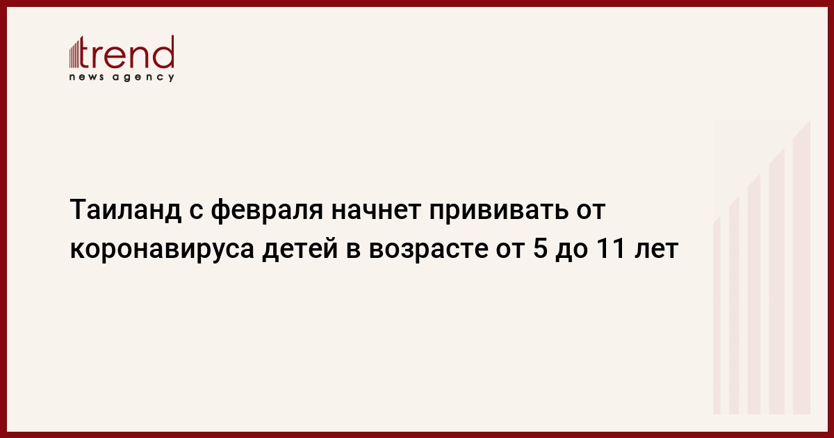 Власти Таиланда планируют начать вакцинацию от коронавируса детей в возрасте от 5 до 11 лет с 1 февраля. Об этом сообщила во вторник во время брифинга глава отдела новостей министерства иностранных дел королевства Марати Налита Андамо, передает Trend со ссылкой на ТАСС.