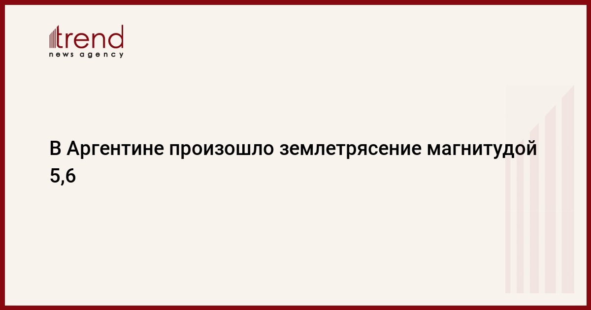 Землетрясение магнитудой 5,6 зафиксировано во вторник на севере Аргентины. Об этом сообщил Европейско-средиземноморский сейсмологический центр, передает Trend со ссылкой на ТАСС.