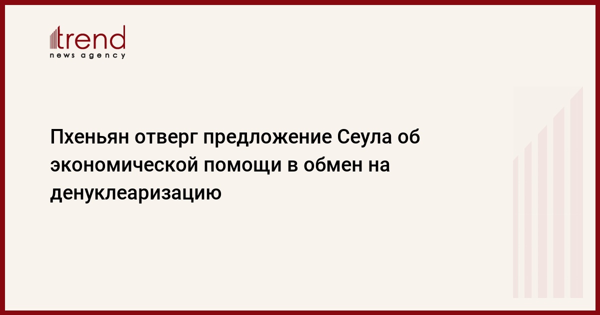 КНДР никогда не согласится на реализацию инициативы Южной Кореи по модернизации северокорейской экономики в обмен на существенные шаги в направлении денуклеаризации, заявила заместитель заведующего отделом агитации и пропаганды ЦК Трудовой партии Кореи (ТПК) Ким Е Чжон - сестра лидера КНДР Ким Чен Ына, передает Trend со ссылкой на "Интерфакс".