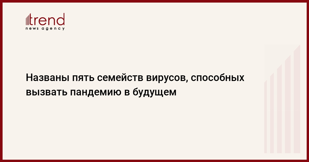Австралийские ученые назвали пять видов вирусов, представляющих наибольшую угрозу для человечества и способных вызвать новую пандемию, передает Trend со ссылкой на ТАСС.
