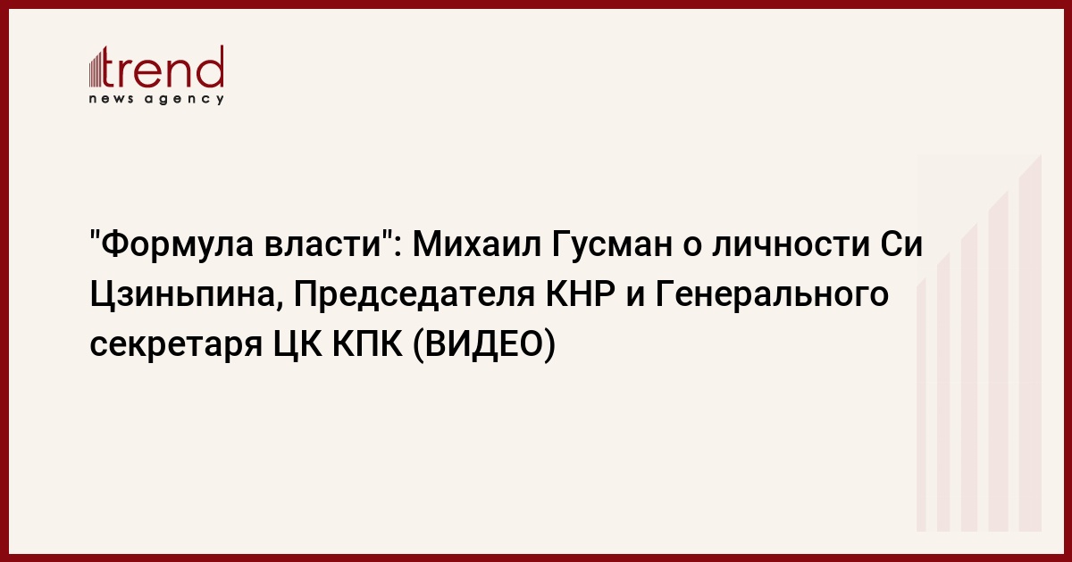 БАКУ /Trend/ - Вышел в эфир телефильм из цикла "Формула власти" Михаила Гусмана, посвященный личности Си Цзиньпина, Председателя КНР и Генерального секретаря ЦК КПК.