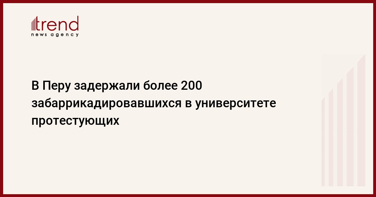 Полиция Перу задержала более 200 человек при разгоне протестующих, забаррикадировавшихся в здании университета в Лиме. Об этом сообщила в субботу радиостанция RPP со ссылкой на верховного прокурора Альфонсо Барренечеа, передает Trend со ссылкой на ТАСС.