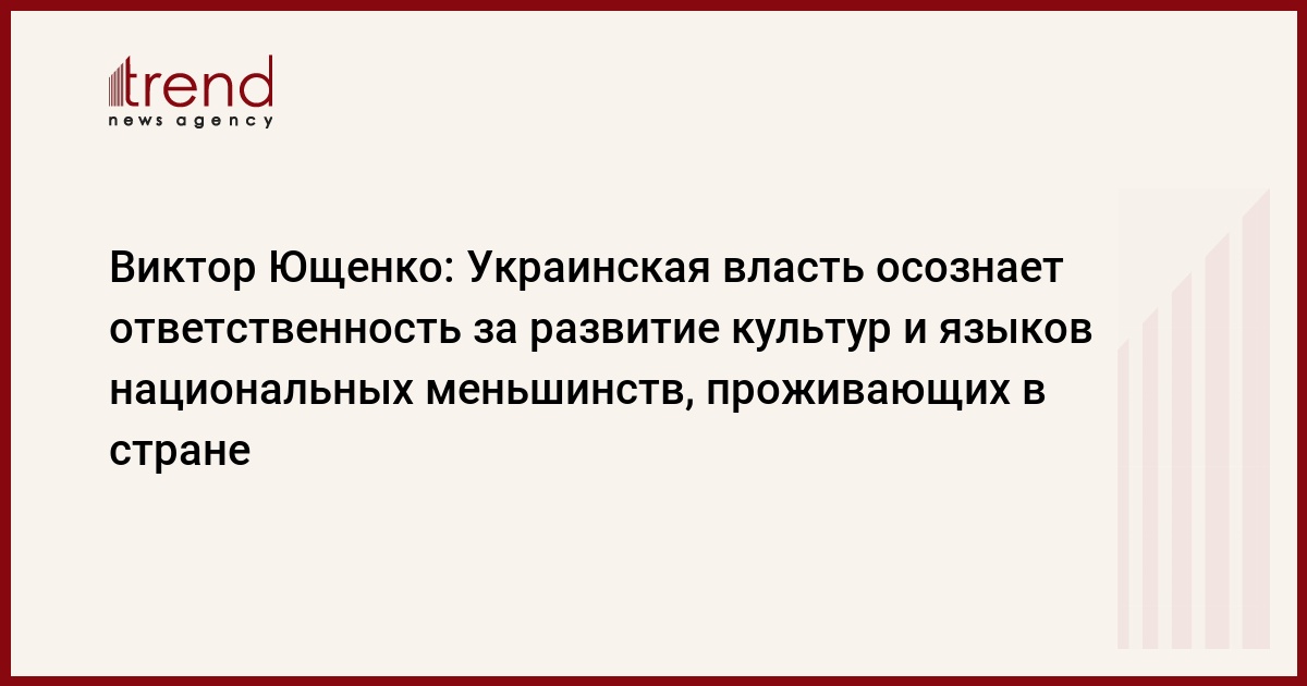 Президент Украины Виктор Ющенко заявил, что украинская власть осознает ответственность за обеспечение достойных условий для развития культур и языков всех национальных меньшинств, проживающих в стране. Об этом глава государства сказал сегодня, выступая на пятом съезде Национального союза писателей Украины.