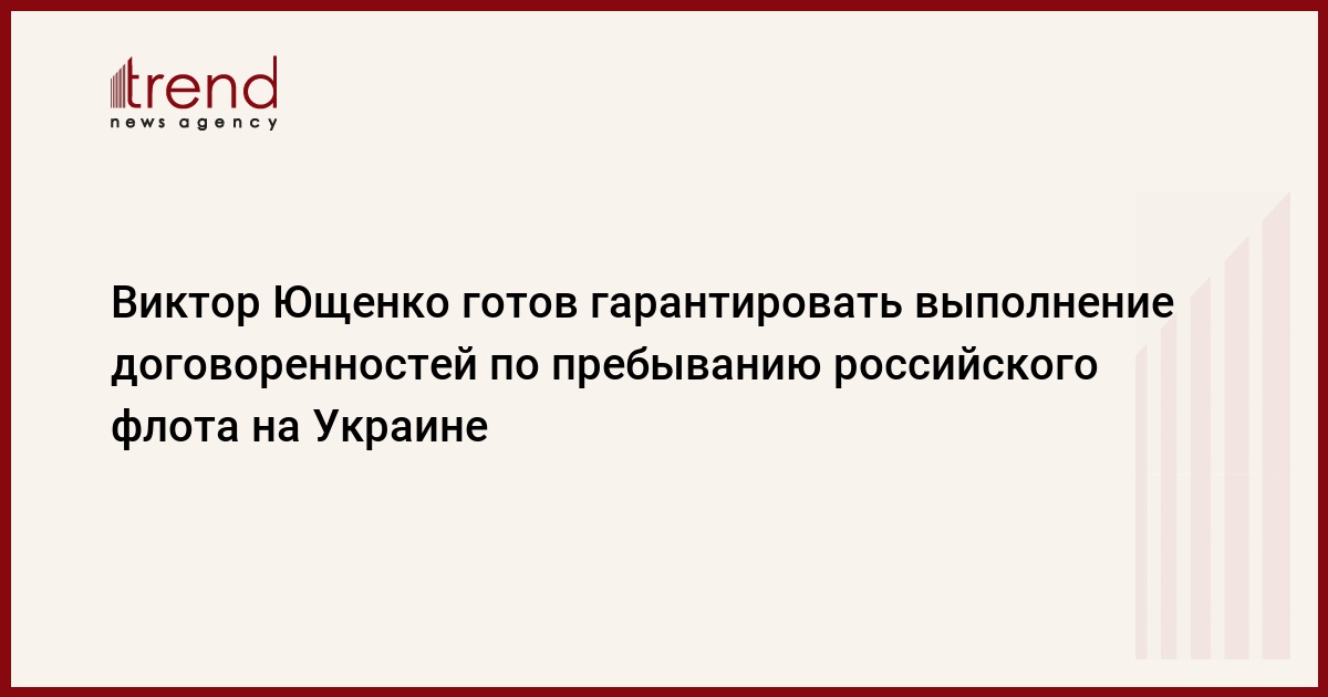 Как передает Trend со ссылкой на ИТАР-ТАСС, по его словам, визит российского лидера в Украину "очевидно состоится до конца года". Как сообщил Ющенко, этот визит должен ознаменовать первое заседание межгосударственной комиссии Путин-Ющенко, в рамках которой действует специальный комитет по проблемам пребывания российского флота в Севастополе. "Hадеюсь, что переговоры помогут найти ответы на вопросы, которую волнуют наши страны", - отметил украинский президент.