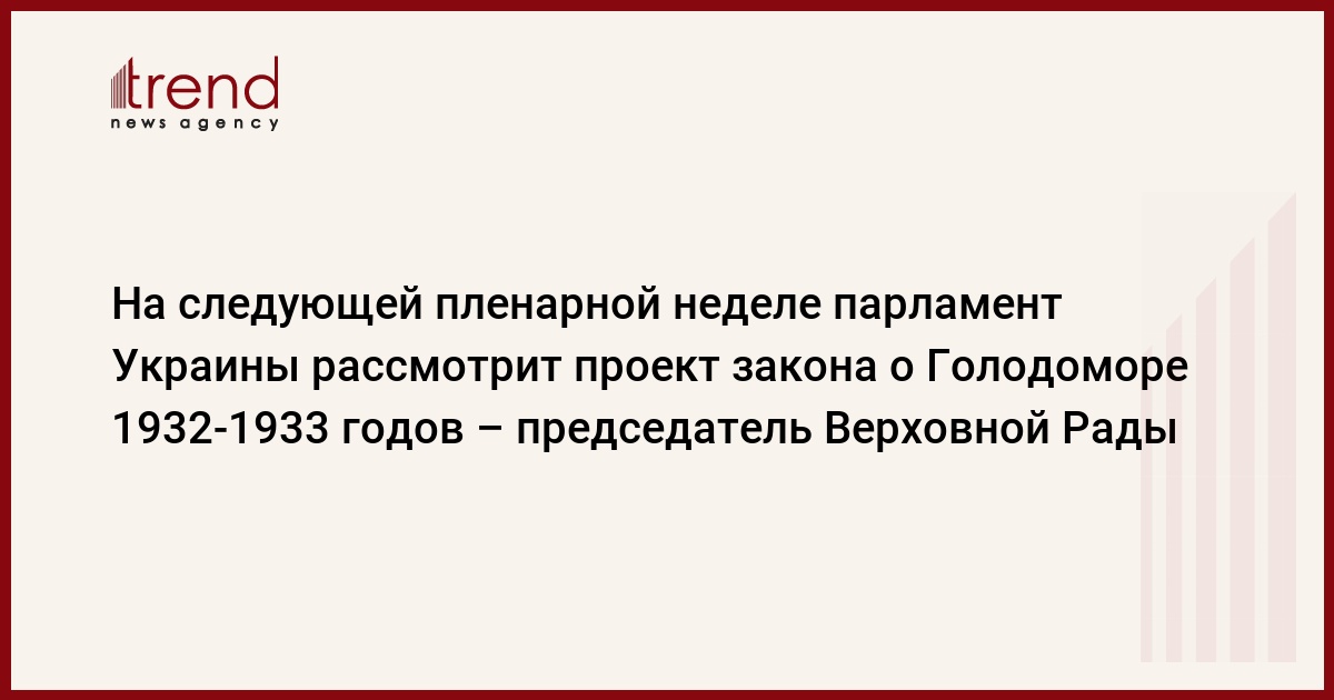 На следующей пленарной неделе (28 ноября - 1 декабря) Верховная Рада Украины рассмотрит внесенный Президентом Украины законопроект "О Голодоморе 1932-1933 годов в Украине".
