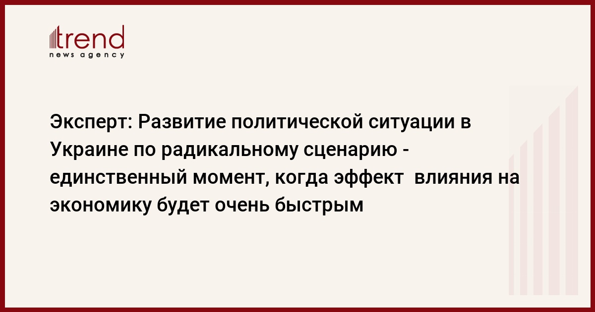 Украина, Киев /корр. Trend З.Новосвитский/ Развитие политической ситуации в Украине по радикальному сценарию, это единственный момент, когда эффект влияния на экономику будет очень быстрым. Об этом собкору Trend в Киеве заявил эксперт по экономическим вопросам Андрей Блинов.