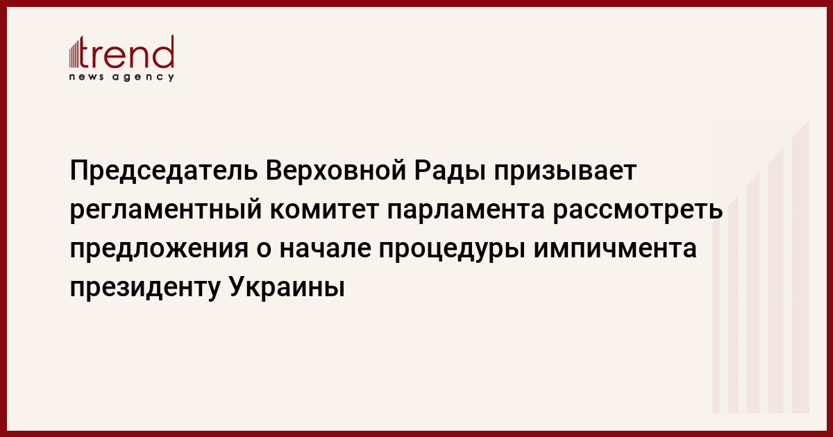 Украина, Киев /корр. Trend З.Новосвитский / Председатель Верховной Рады Украины Александр Мороз сегодня призвал регламентный комитет парламента рассмотреть предложения народных депутатов относительно начала процедуры импичмента президенту Виктору Ющенко .А.Мороз отметил, что обращается к председателю регламентного комитета Александру Ефремову, чтобы на ближайшем заседании комитета эти предложения были рассмотрены. Вместе с тем А.Мороз призвал не делать поспешных резких заявлений и внимательно изучить все обстоятельства.Как сообщалось, в Верховной Раде зарегистрирован проект постановления об обеспечении предотвращения антиконституционных действий и попыток узурпации государственной власти и инициации процедуры отстранения В.Ющенко с поста президента Украины в порядке импичмента.