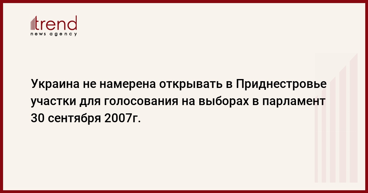 Между тем власти Приднестровья выступают за открытие избирательных участков для голосования на досрочных выборах в Верховную раду 30 сентября 2007г., отмечая, что в регионе проживает большое число граждан Украины. Они указывают, что в Приднестровье проживают около 80 тыс. граждан Украины, в то время как в Молдавии, по их подсчетам, насчитывается лишь 3,5 тыс.