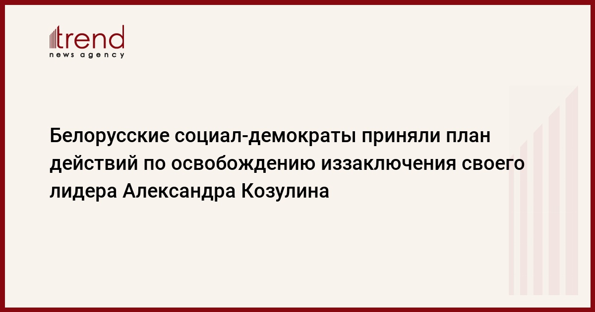 Оппозиционная Белорусская социал-демократическая партия /Грамада/ приняла Комплексный план действий по освобождению из заключения своего лидера Александра Козулина. Планируется проведение различных внутрипартийных, общественно- политических, правовых, международных мероприятий, передает ИТАР-ТАСС .
