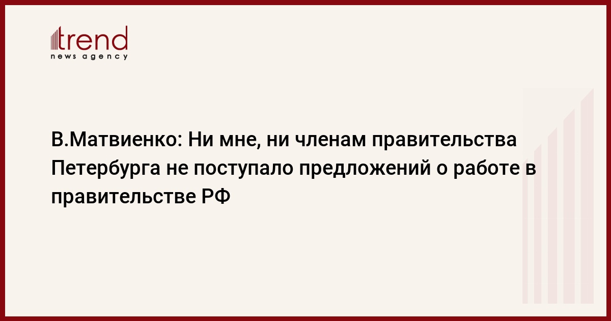 Губернатор Санкт-Петербурга Валентина Матвиенко заявила журналистам, что ни она, ни кто-либо из членов городского правительства не получал предложений о переходе на работу в правительство РФ, сообщает РБК. "Без моего ведома никто никуда уходить не может. Это является элементом наших обязатель ств др уг перед другом", - отметила глава города, комментируя слухи о возможности перехода губернатора Петербурга или других высокопоставленных чиновников Смольного в федеральное правительство. Отвечая на вопрос о том, как она оценивает кандидатуру Виктора Зубкова, предложенную на пост премьер-министра России, В.Матвиенко сказала, что он является "человеком с безупречной репутацией" и "хорошо представляет ситуацию в экономике и финансовой сфере". Губернатор предположила, что В.Зубков в случае утверждения его кандидатуры Государственной думой будет активно помогать Петербургу. Кроме того, отметила В.Матвиенко, "он много знает о счетах за рубежом". "Это важно, потому что нам надо очищать нашу экономику", - пояснила она.Напомним, накануне премьер-министр России Михаил Фрадков обратился к главе государства с просьбой рассмотреть вопрос об отставке правительства в преддверии парламентских и президентских выборов. Президент РФ Владимир Путин предложил на пост премьера кандидатуру В.Зубкова - главы Росфинмониторинга .