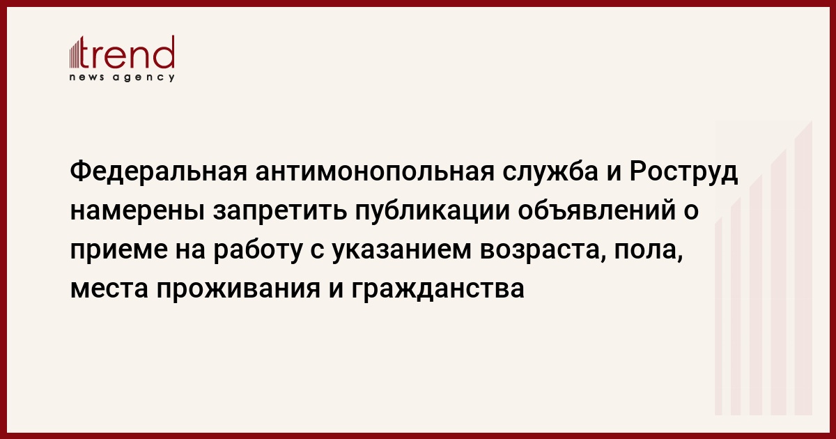 Поскольку это носит дискриминационный характер в отношении ряда соискателей, - пишет газета "Коммерсант". Борьба с трудовой дискриминацией в российских компаниях начнется уже в этом году. Работодателей поставят в известность о незаконности публикаций таких объявлений в СМИ. Нарушителям грозит штраф на сумму от 40 до 500 тысяч рублей.