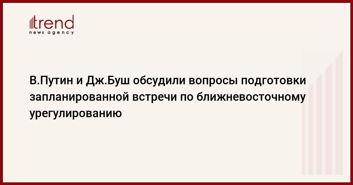 20 ноября по инициативе американской стороны состоялся телефонный разговор президента России Владимира Путина с президентом США Джорджем Бушем. Как сообщает пресс-служба главы Российского государства, главы двух стран обменялись мнениями о практических аспектах подготовки к запланированной на конец ноября текущего года в г.Аннаполисе (США) международной встрече по ближневосточному урегулированию. В развитие состоявшегося месяц назад - 22 октября с.г. - телефонного разговора В.Путин и Дж.Буш продолжили обсуждение актуальных вопросов стратегической повестки дня, передает РБК .