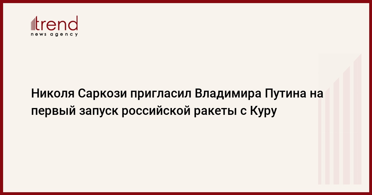 Президент Франции Николя Саркози пригласил на первый запуск российской ракеты "Союз-СТ" с экваториального космодрома Куру во французской Гвиане, который состоится в середине 2009 года, действующего президента РФ Владимира Путина и будущего главу российского государства, сообщил во вторник руководитель Роскосмоса Анатолий Перминов в эфире круглосуточного телеканала "Вести".