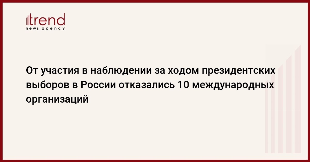 человека (БДИПЧ) Организации по безопасности и сотрудничеству в Европе (ОБСЕ), Парламентской ассамблеи (ПА) ОБСЕ, Северного совета, передает РБК. Центральное Бюро по выборам в Венгрии также отказалось из-за проведения собственного референдума 9 марта с.г. По причине проведения собственных выборов пришел отказ от МВД Испании, МВД Франции и Центральной избирательной комиссии Великобритании.