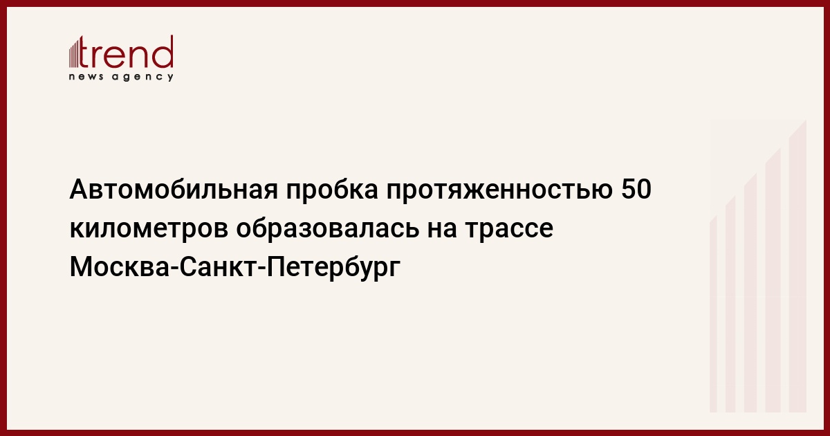 Автомобильная пробка протяженностью почти 50 километров образовалась на трассе Москва-Санкт-Петербург в районе Великого Новгорода, передаёт Эхо Москвы.