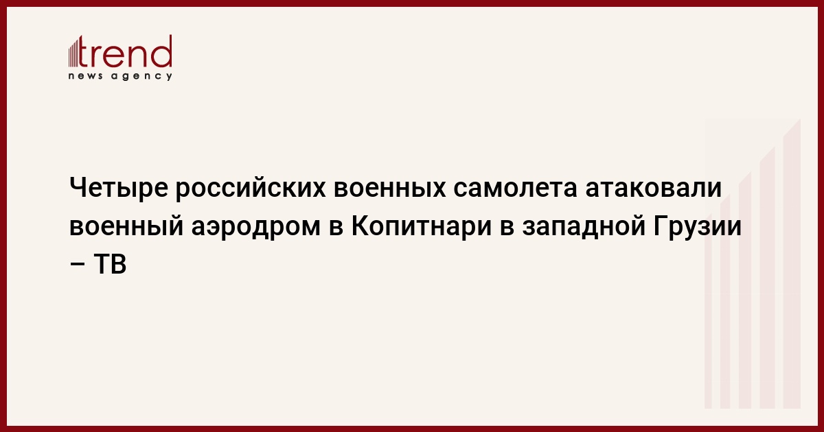 Четыре российских военных самолета атаковали военный аэродром в Копитнари в западной Грузии - сообщила телекомпания "Рустави-2" со ссылкой на очевидцев. В результате бомбежки повреждена взлетная полоса аэродрома, один человек ранен, передает Новости-Грузия.