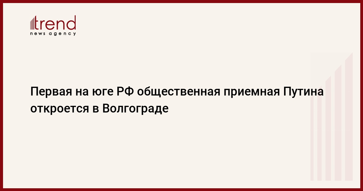Первая в Южном федеральном округе (ЮФО) общественная приемная председателя Всероссийской политической партии "Единая Россия", премьер-министра РФ Владимира Путина откроется в четверг в Волгограде, сообщает пресс-служба администрации города, передает РИА Новости .