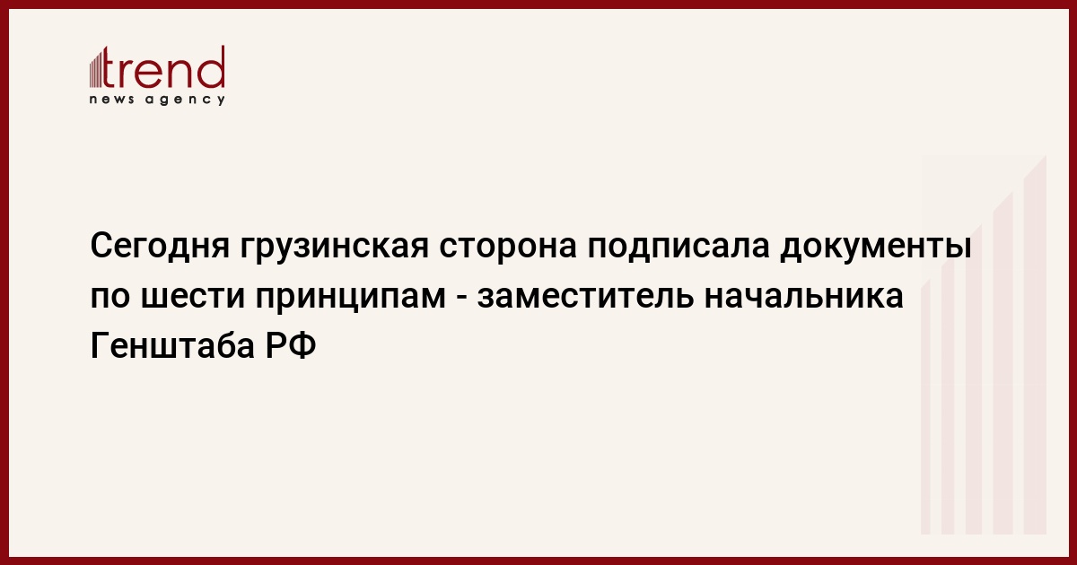 Сегодня стало известно, грузинская сторона подписала документы по шести принципам, заявил сегодня на брифинге в Москве заместитель начальника Генштаба РФ А. Ноговицын, сообщает телеканал "Вести".