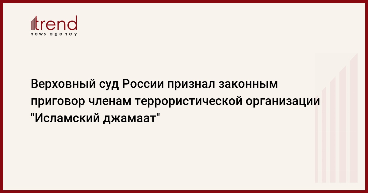 Верховный суд РФ признал законным приговор членам террористической организации "Исламский джамаат", сообщили в суде. Таким образом, суд отклонил жалобу адвокатов и осужденных, которые просили отменить ранее вынесенный приговор, либо смягчить им наказание, передает РБК.