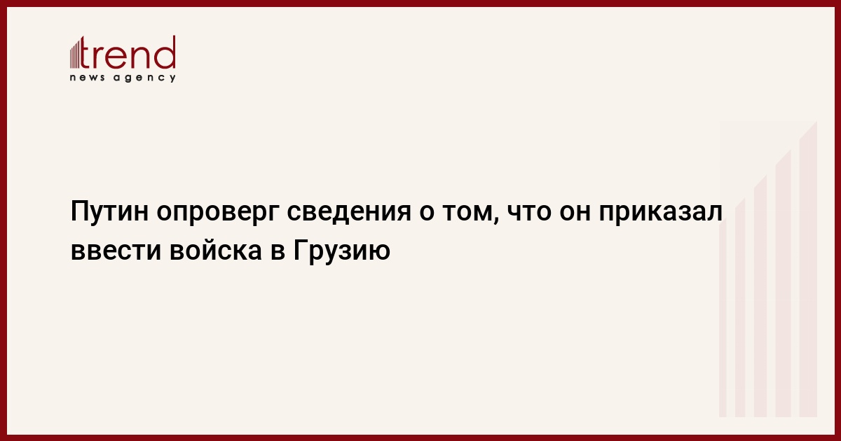 ПУТИН ОПРОВЕРГАЕТ СВЕДЕНИЯ О ТОМ, ЧТО ЯКОБЫ ЭТО ОН ОТДАЛ ПРИКАЗ О ВВОДЕ РОССИЙСКИХ ВОЙСК В ГРУЗИЮ, сообщает РИА Новости .