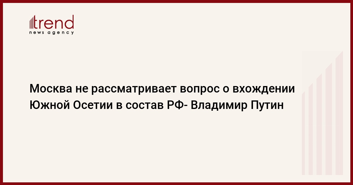 Москва не рассматривает вопрос о вхождении Южной Осетии в состав России, передает РИА Новости, ссылаясь на заявление премьер-министра РФ Владимира Путина на встрече с представителями международного дискуссионного клуба "Валдай".