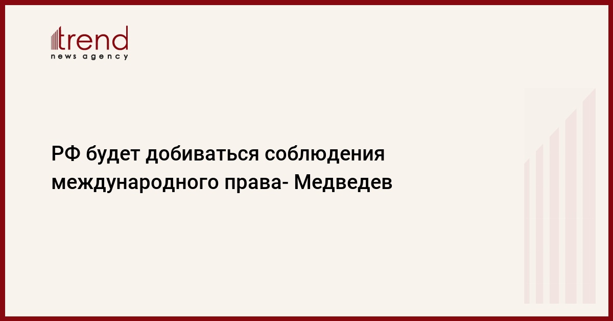 Россия намерена добиваться, чтобы нормы международного права реализовывались в мире не на словах, а на деле, заявил президент РФ Дмитрий Медведев в пятницу на встрече с представителями общественных организаций РФ, передает РИА Новости.