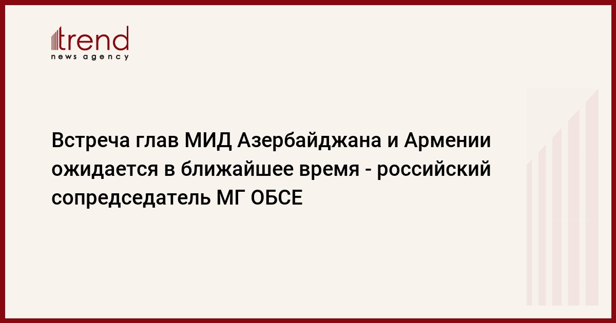 Встреча министров иностранных дел Армении и Азербайджана ожидается в ближайшее время, сообщил сопредседатель Минской группы ОБСЕ от России Юрий Мерзляков.
