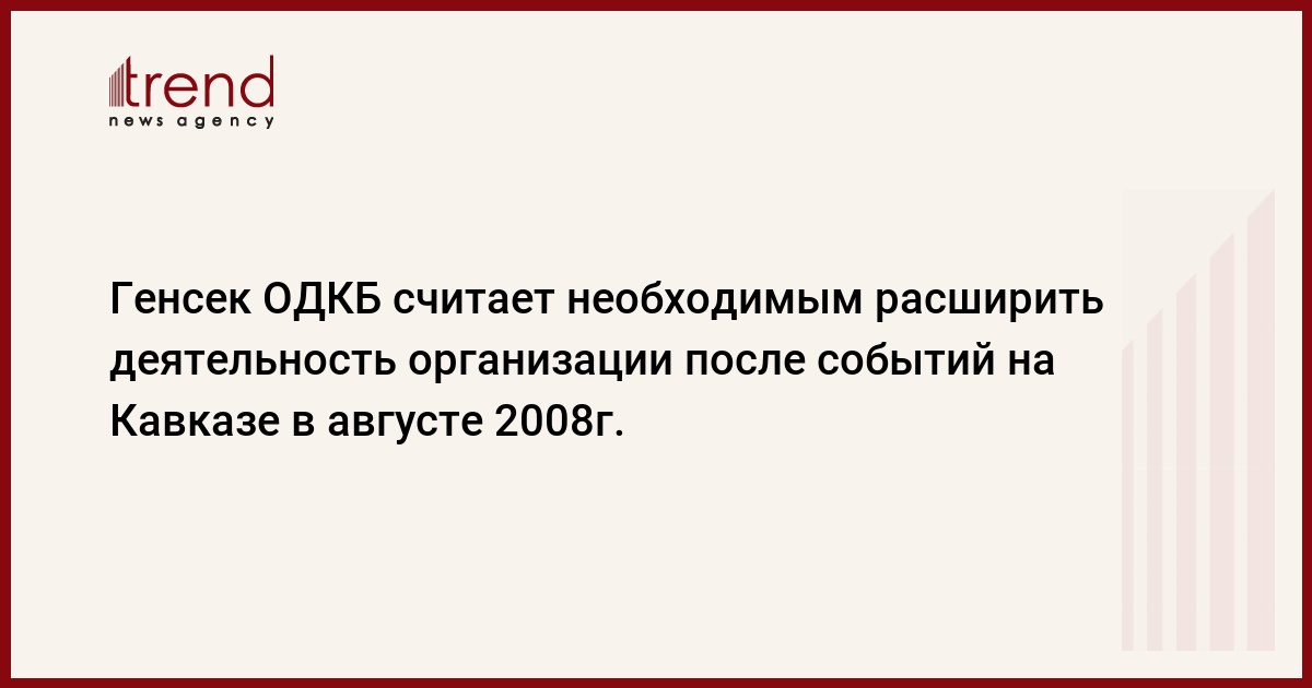 Генеральный секретарь Организации Договора о коллективной безопасности (ОДКБ) Николай Бордюжа считает необходимым расширить деятельность организации после событий на Кавказе в августе 2008г., передает РБК. "После августовских событий мы говорим о необходимости укрепления ОДКБ и расширения тех задач, которые стоят перед организацией", - сказал он, выступая на заседании комитета секретарей советов безопасности стран - членов ОДКБ в Ереване. Речь идет не только об укреплении организации как таковой, но и о расширении деятельности ОДКБ по всем направлениям. В частности, Н.Бордюжа указал на целесообразность разработки нового направления финансового мониторинга.