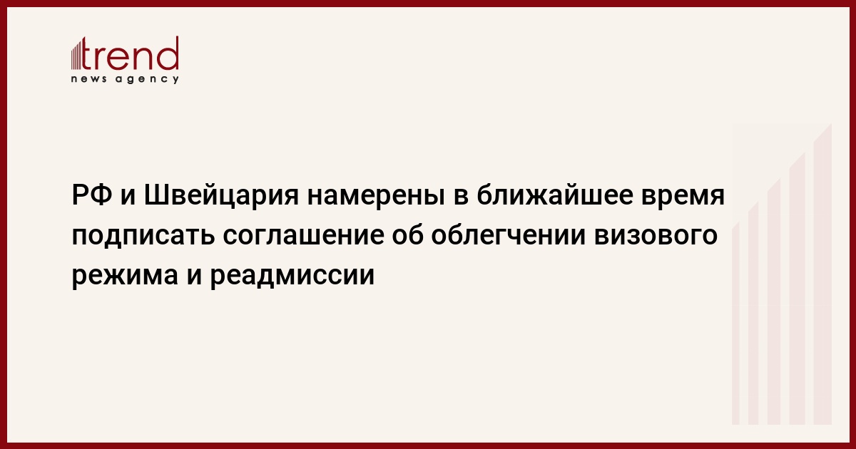 Россия и Швейцария намерены в ближайшее время подписать соглашение об облегчении визового режима и реадмиссии, сообщил глава МИД РФ Сергей Лавров в ходе пресс-конференции по итогам встречи с главой швейцарского Министерства иностранных дел Мишлин Кальми-Рей, сообщает РБК.
