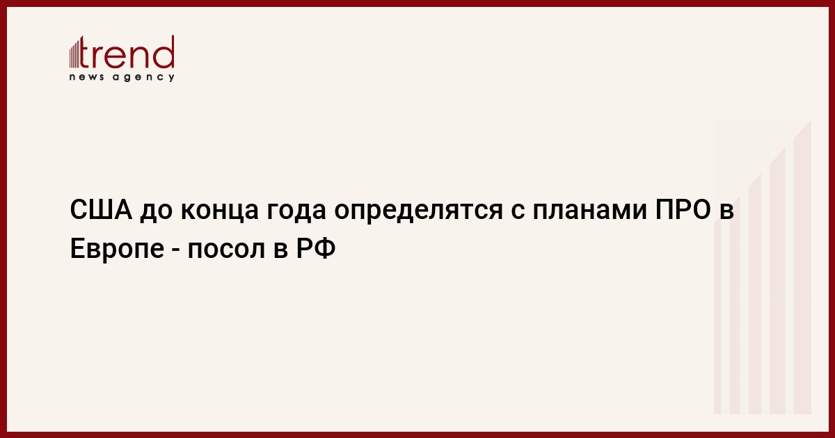 Посол США в России Джон Байерли заявил, что Вашингтон "к концу лета или в начале осени" определится с планами размещения элементов системы противоракетной обороны в Чехии и Польше, сообщило агентство РИА Новости